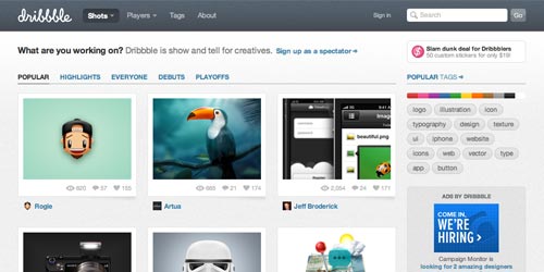 Dribbble 是一个专门推发图片的网站,类似 Twitter,不同的是,网站分享的主要内容是设计师上传的 400x300 像素的设计图片。