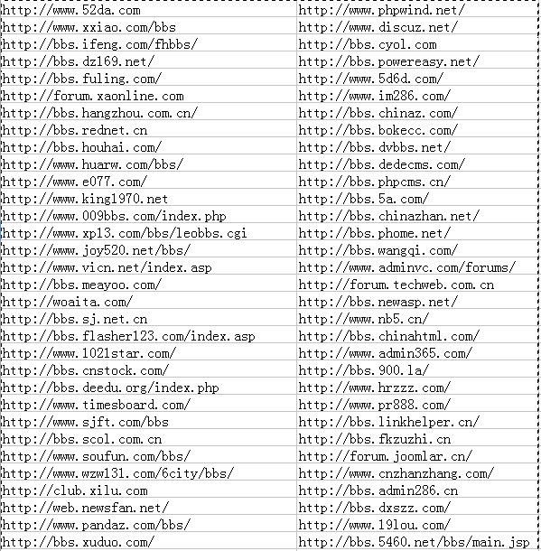 所以,笔者在这几年里整理一些高质量权重的论坛外链,经过这些年的测试,相对其他的外链来讲,效果都是不错的,权重也极高的,并且几乎都是可以带锚文本链接的,对网站排名和权重来说都是极佳的,很适合网站前期来做。好了,笔者在这里也不在啰唆了,开始上链接(因为链接过多,所以笔者用图片的形式来与大家进行分享)。